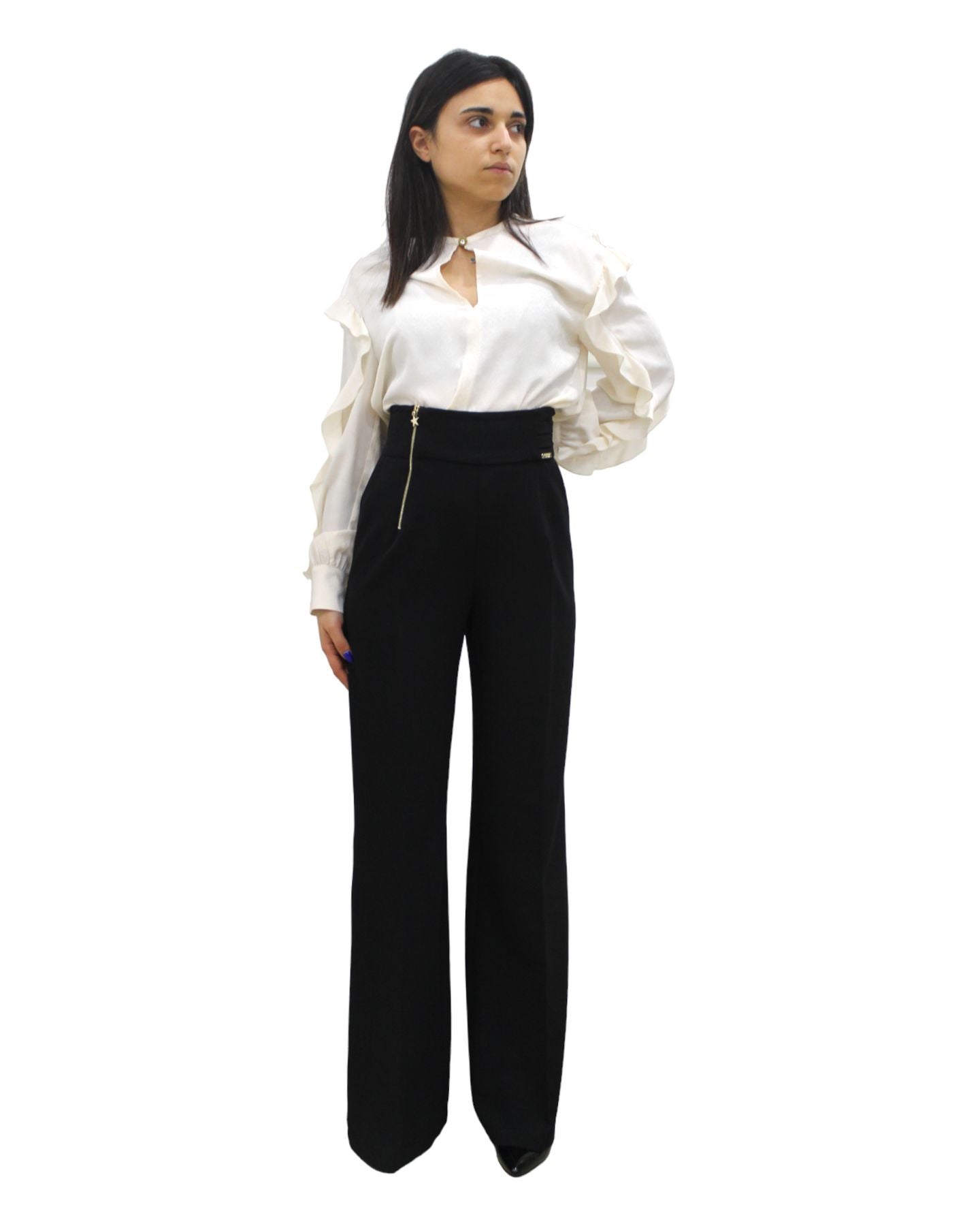 Pantaloni Donna Denny Rose A Palazzo 221ND25001 is a stunning addition to any fashion-forward wardrobe. These long palazzo pants are designed to offer both elegance and comfort, making them perfect for various occasions.