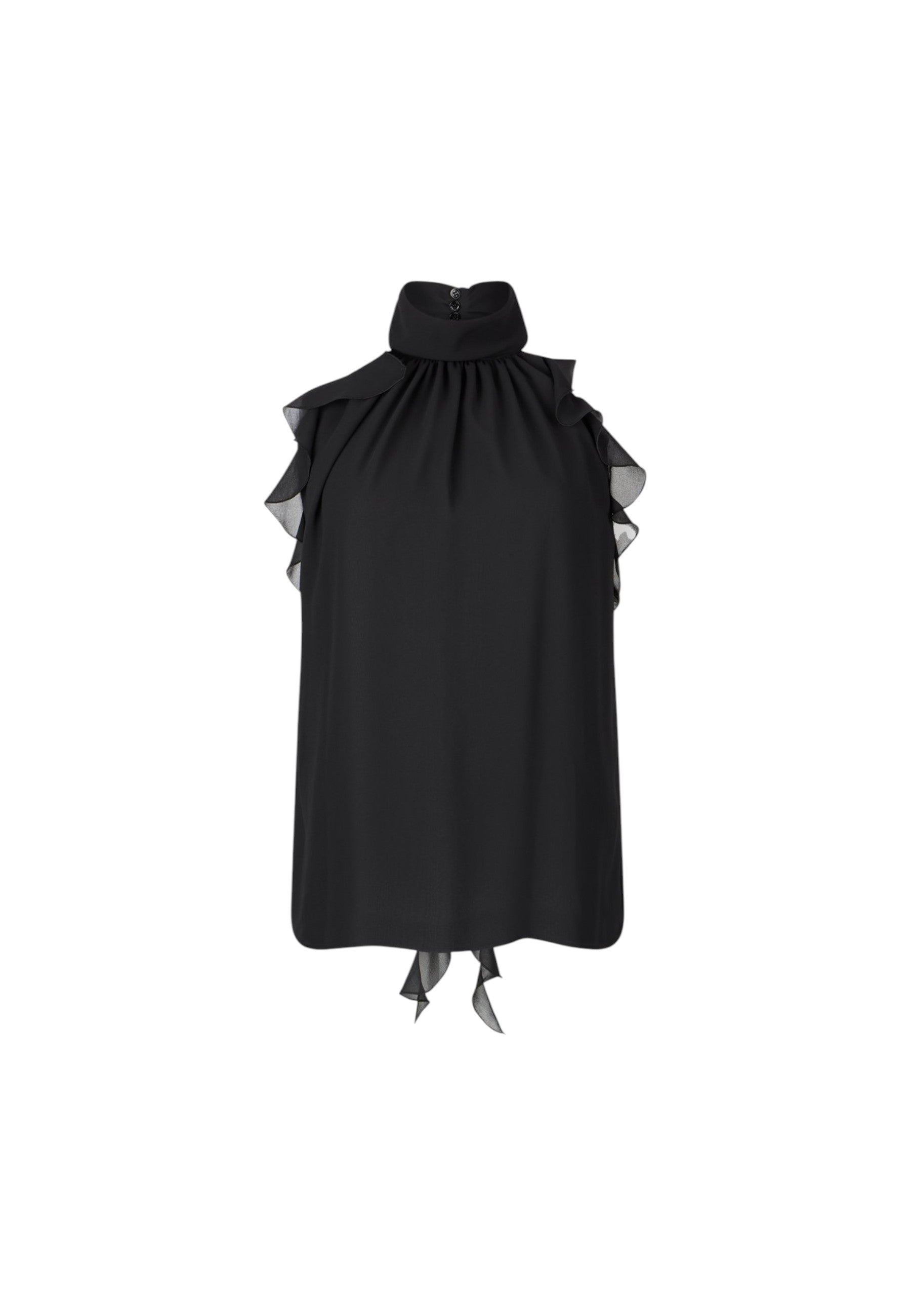 Il design con volant aggiunge un tocco di femminilitàe movimento, rendendo questo top perfetto per ogni outfit. La sua versatilitàlo rende ideale per eventi formali o per un look casual-chic.