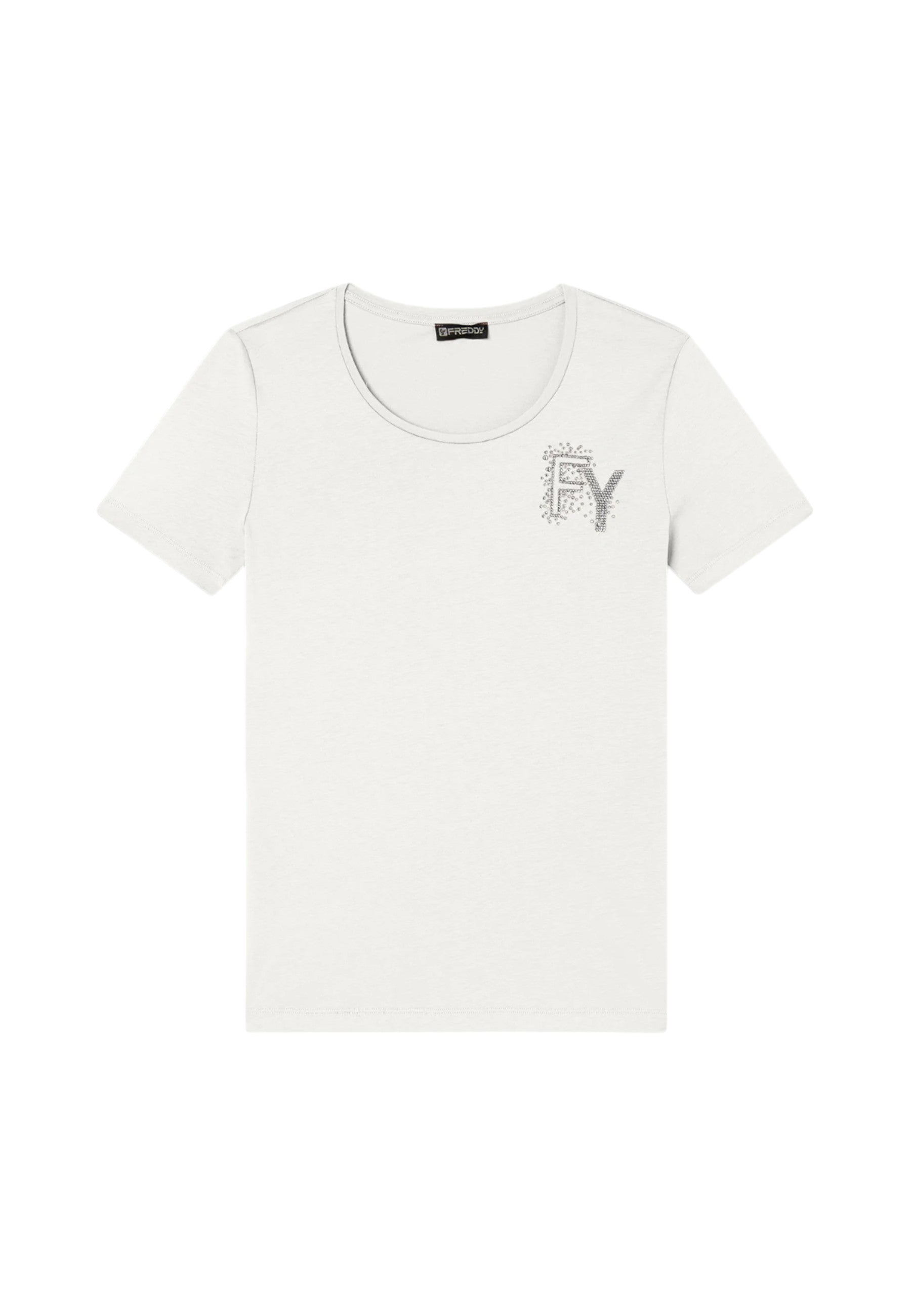 Non perdere l'opportunità di aggiungere un tocco di originalità al tuo look con la T-Shirt Manica Corta Donna Freddy, disponibile su Adel Fashion Group.