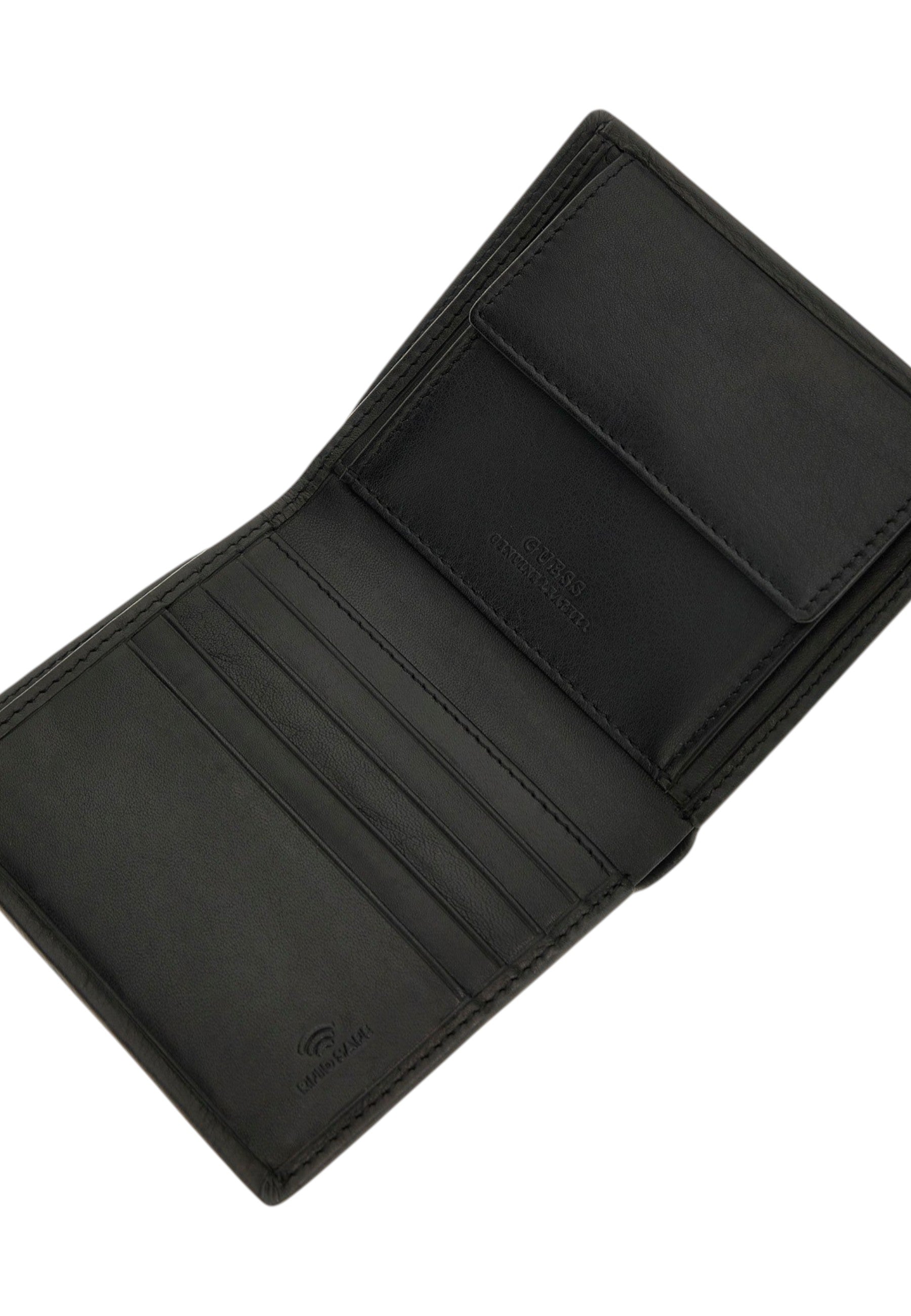 La sua struttura bifold offre ampio spazio per carte e banconote, mentre il portamonete integrato aggiunge praticità. Il design distintivo del marchio Guess lo rende un must-have per l'uomo moderno, che cerca stile e comodità in un unico prodotto.