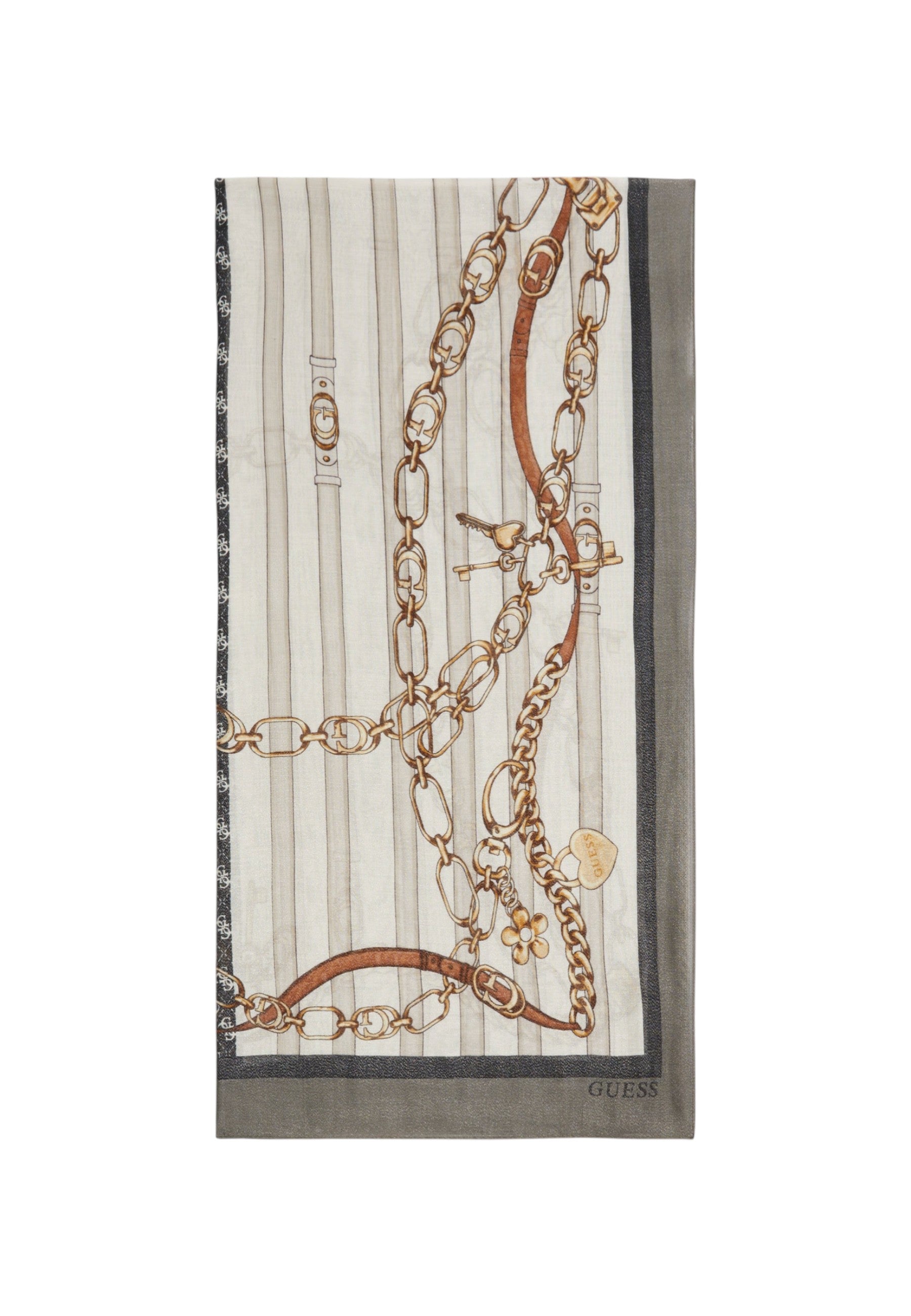 Il design raffinato e le dimensioni generose di 90x180 cm la rendono versatile, permettendoti di indossarla in vari modi. Aggiungi un tocco di classe al tuo guardaroba con questo pezzo distintivo del marchio Guess, che non passa mai inosservato.