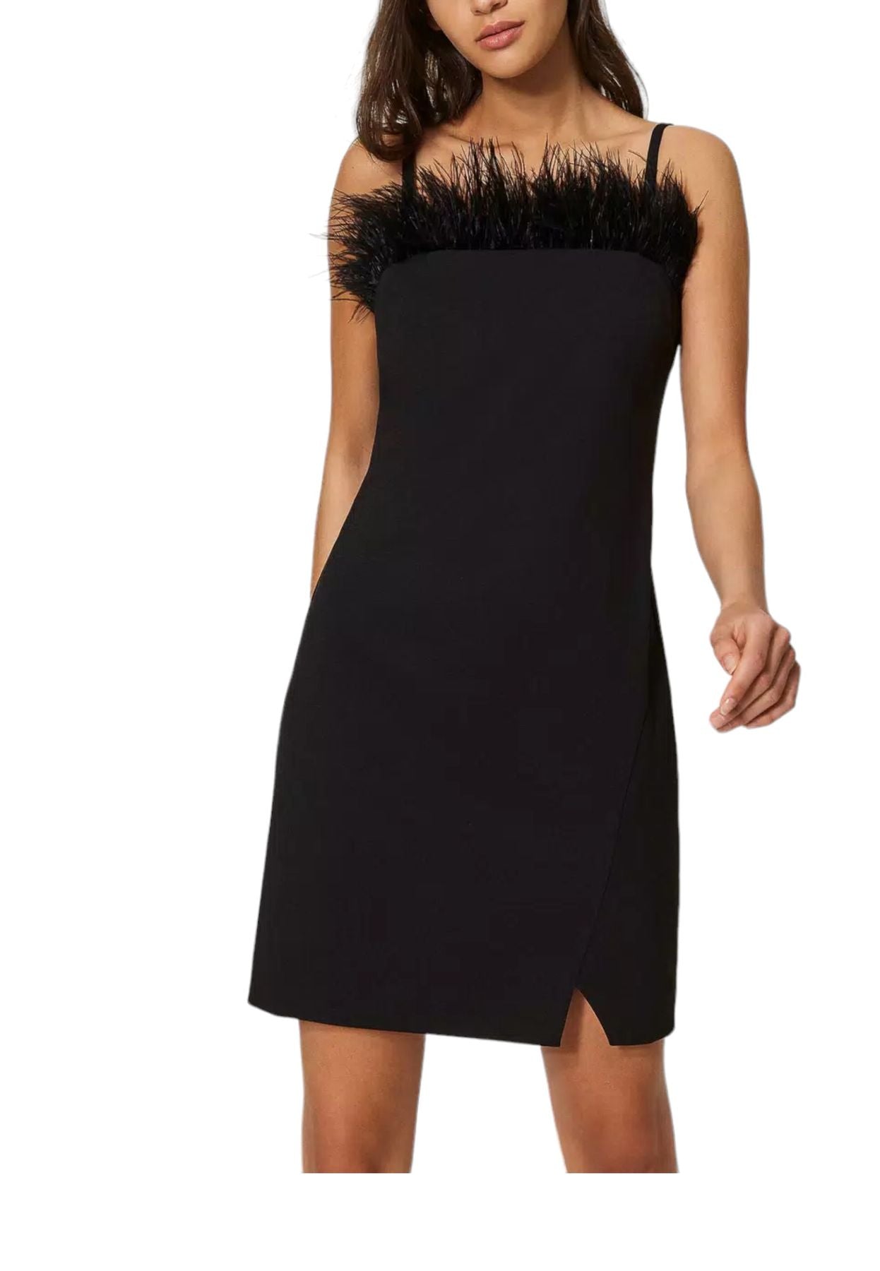 Scopri il Vestito Corto Donna Twinset 232TP2490, un capo unico che unisce eleganza e originalità. Realizzato in morbida viscosa, questo vestito presenta spalline delicate e dettagli in piume, rendendolo perfetto per ogni occasione.