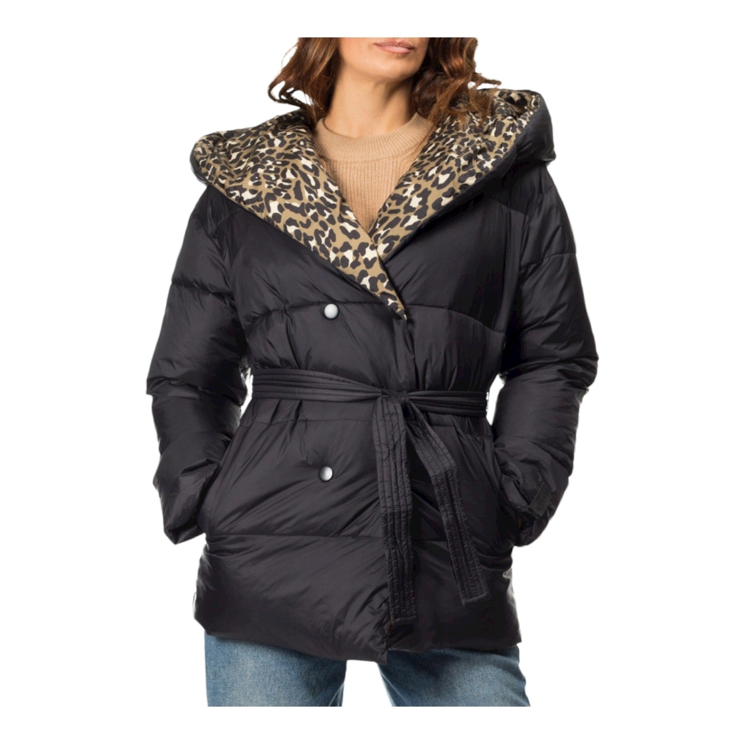 Manteau femme Gaelle à capuche longue, croisé et ceinture à la taille (GBDP13003)