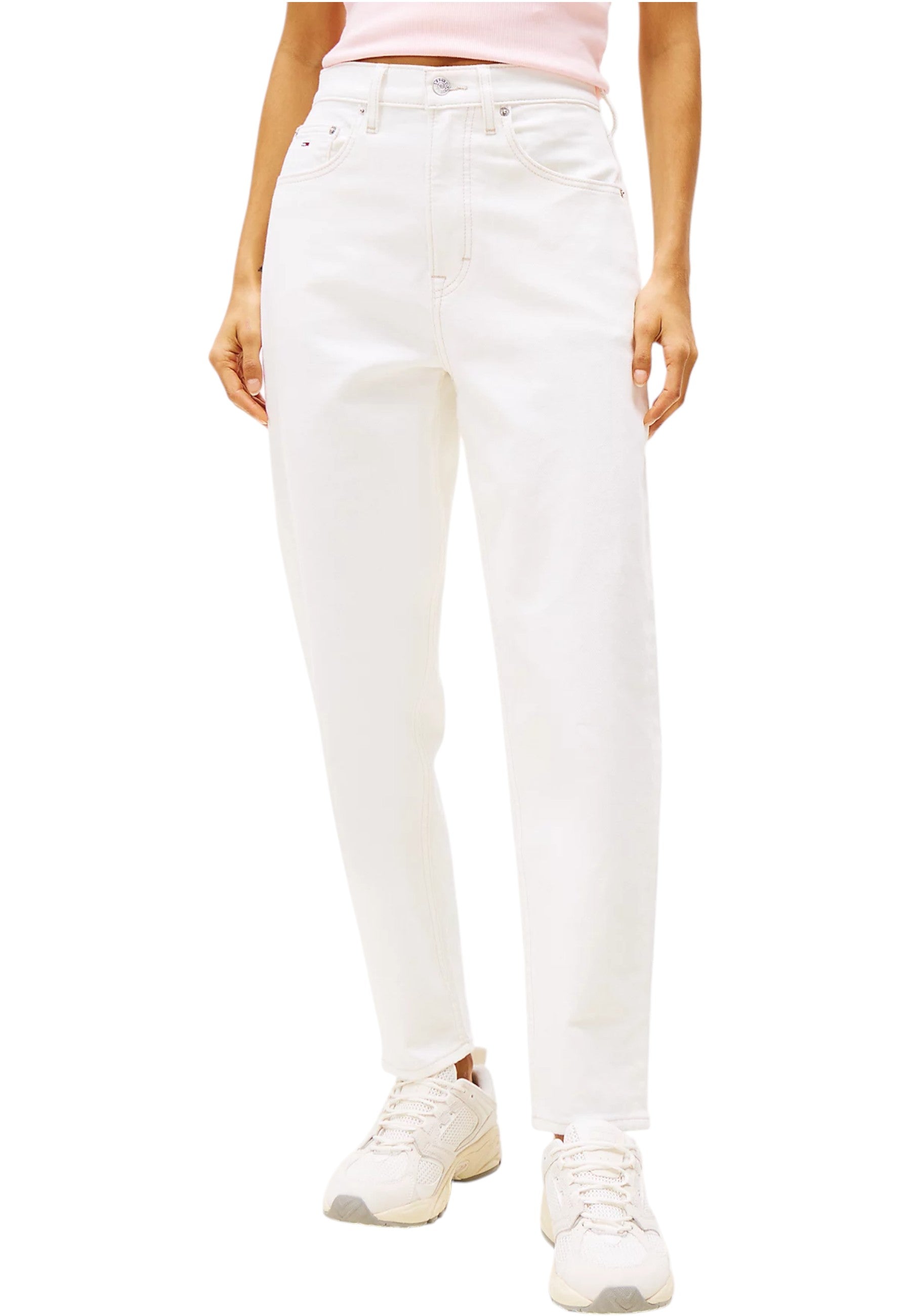 Jeans pour femme de la marque Tommy Jeans, modèle Mom Jean Uh Tpr DW0DW20042, fabriqué en coton.