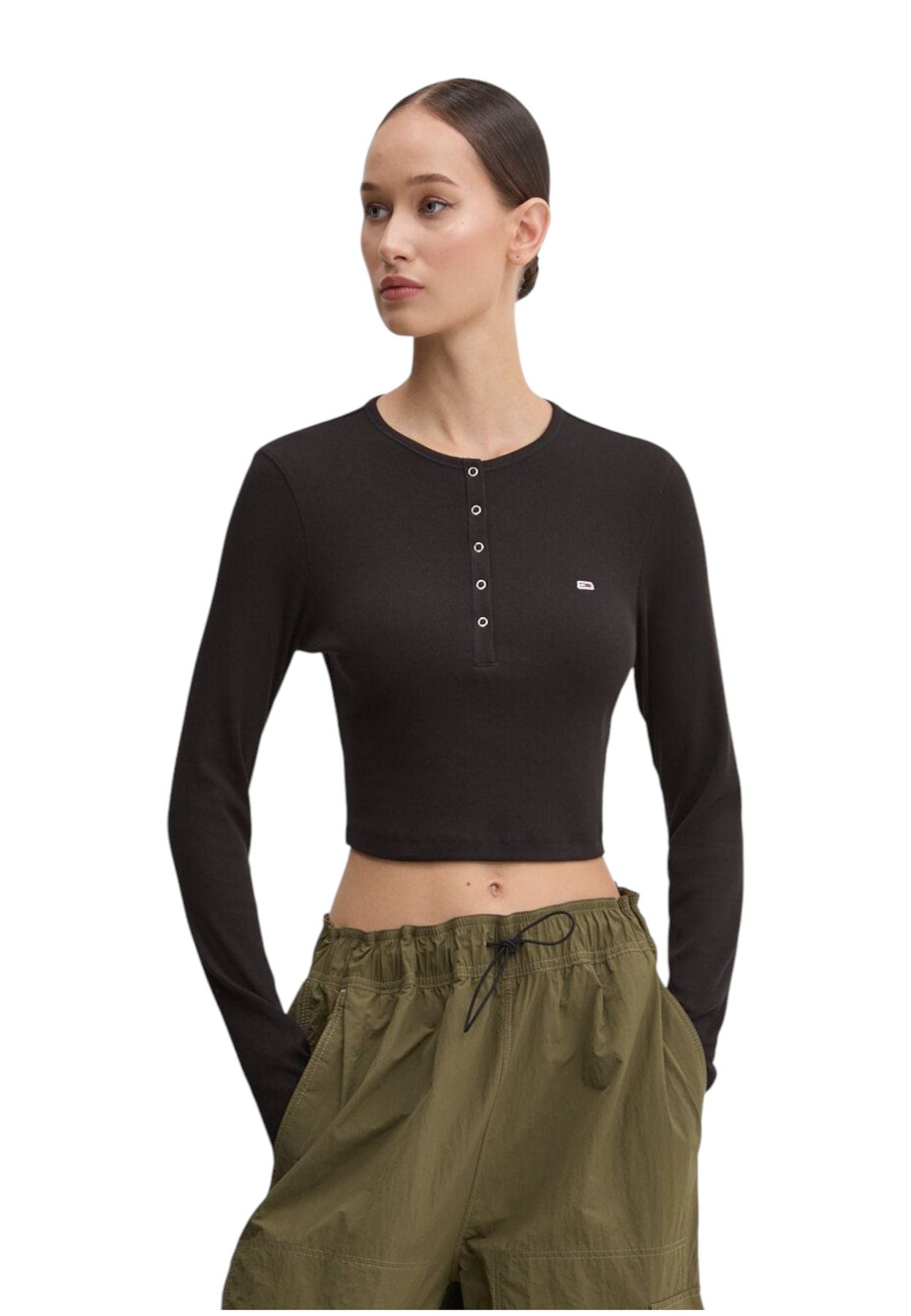 Scopri la Maglia A Girocollo Da Donna DW0DW18430 di Tommy Jeans, un capo unico nel suo genere. Questo modello crop Henley è realizzato in cotone di alta qualità, garantendo comfort e stile in ogni occasione.