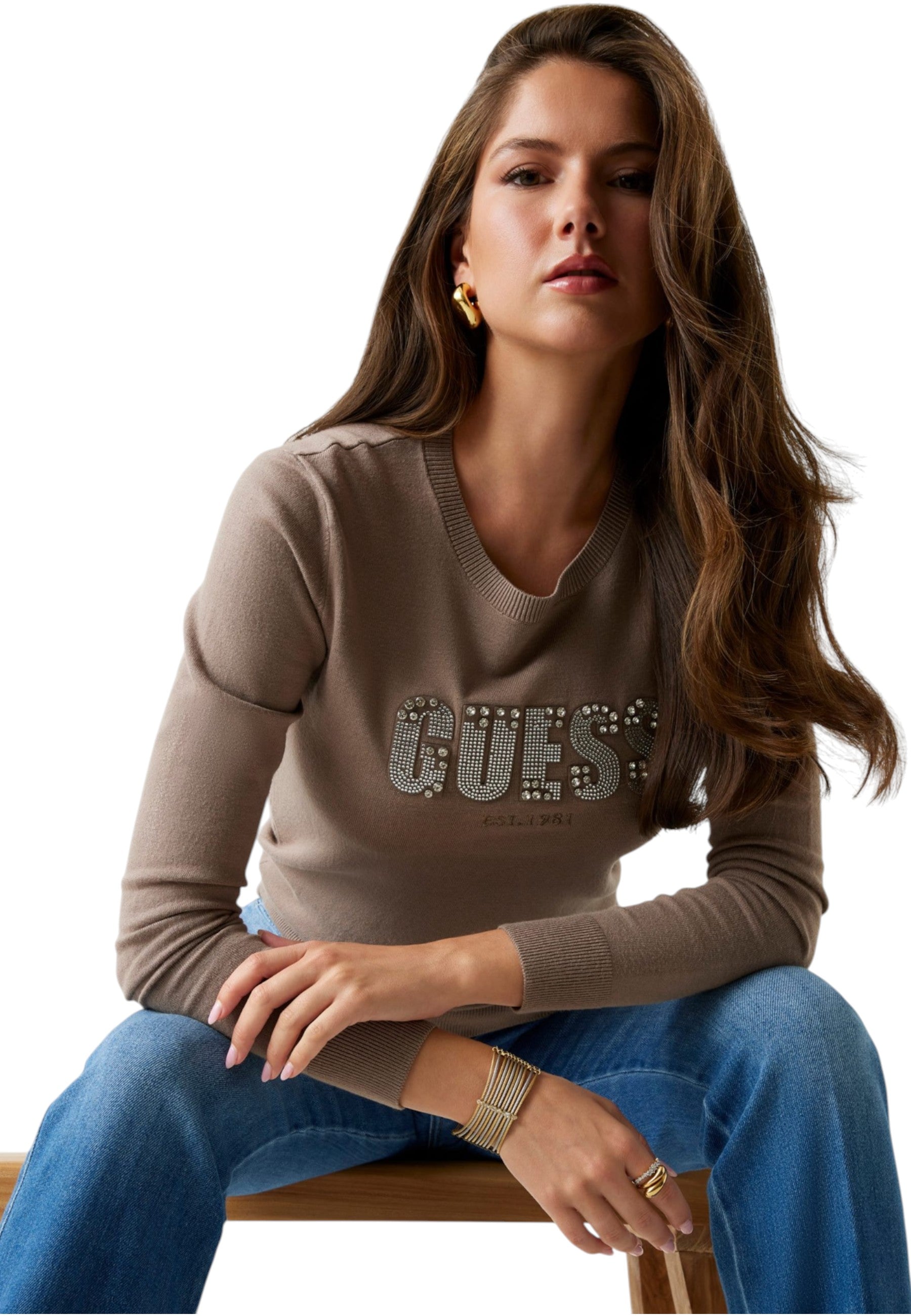 Maglione A Girocollo Donna Guess Reyna Logo W5BR40Z2NQ2