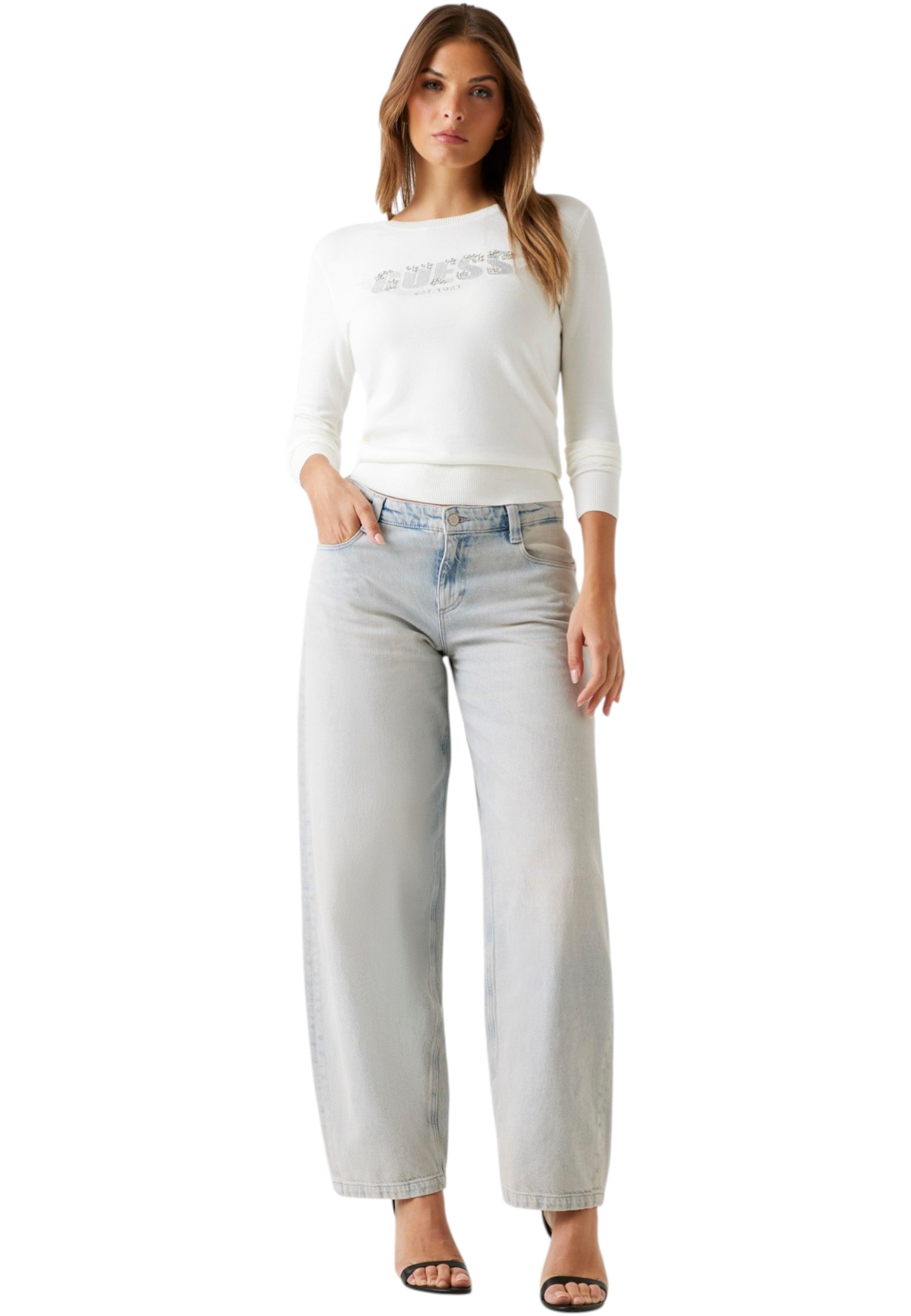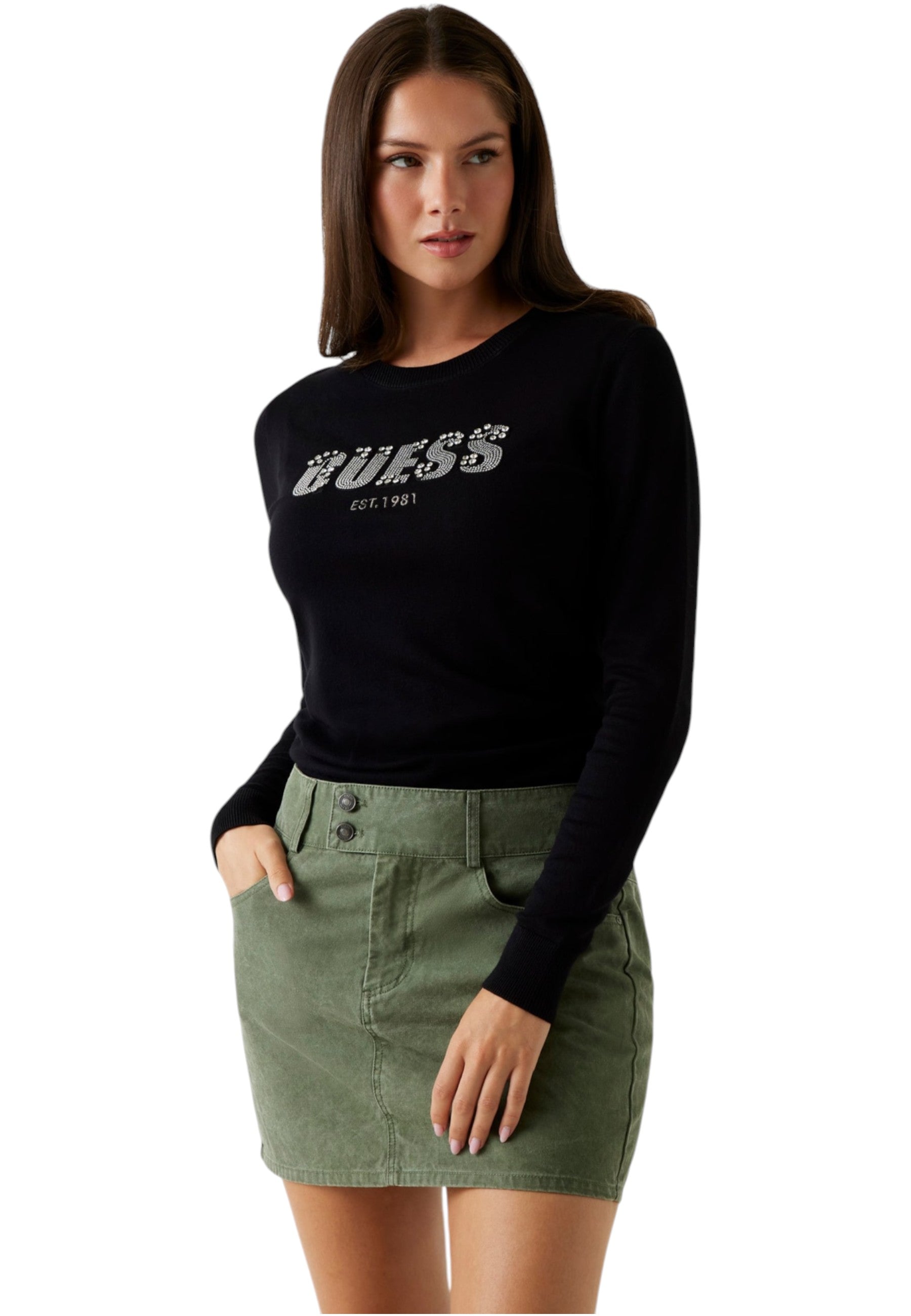 Il design distintivo con il logo Guess aggiunge un tocco di eleganza, rendendolo un must-have nel tuo guardaroba. La sua versatilità ti permette di abbinarlo facilmente a jeans o gonne, per un look sempre alla moda.