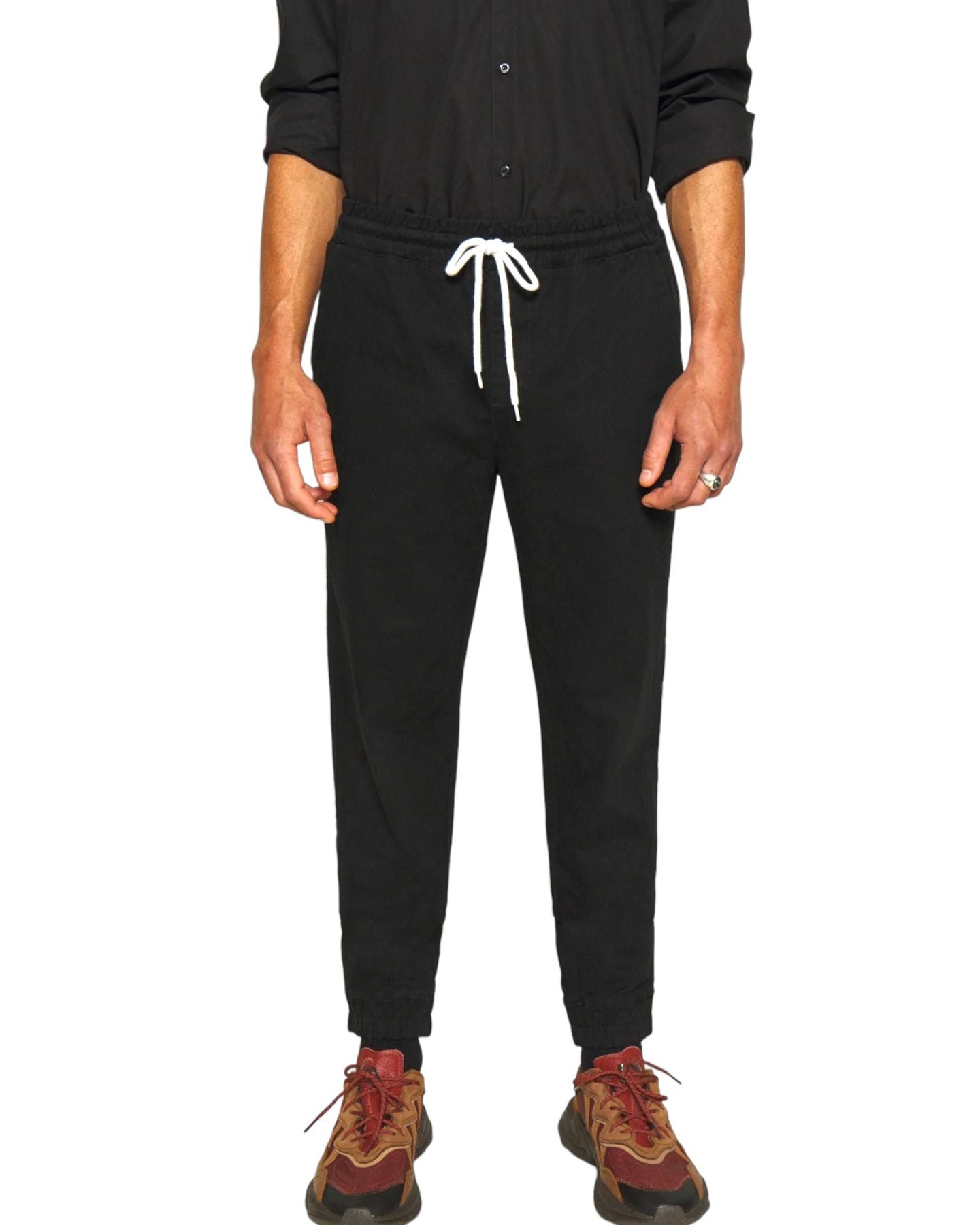 Ciò che rende questi pantaloni unici è il loro design con elastico alla caviglia, che garantisce una silhouette moderna e sportiva. Perfetti per il tempo libero o per un look casual, si abbinano facilmente a qualsiasi outfit.