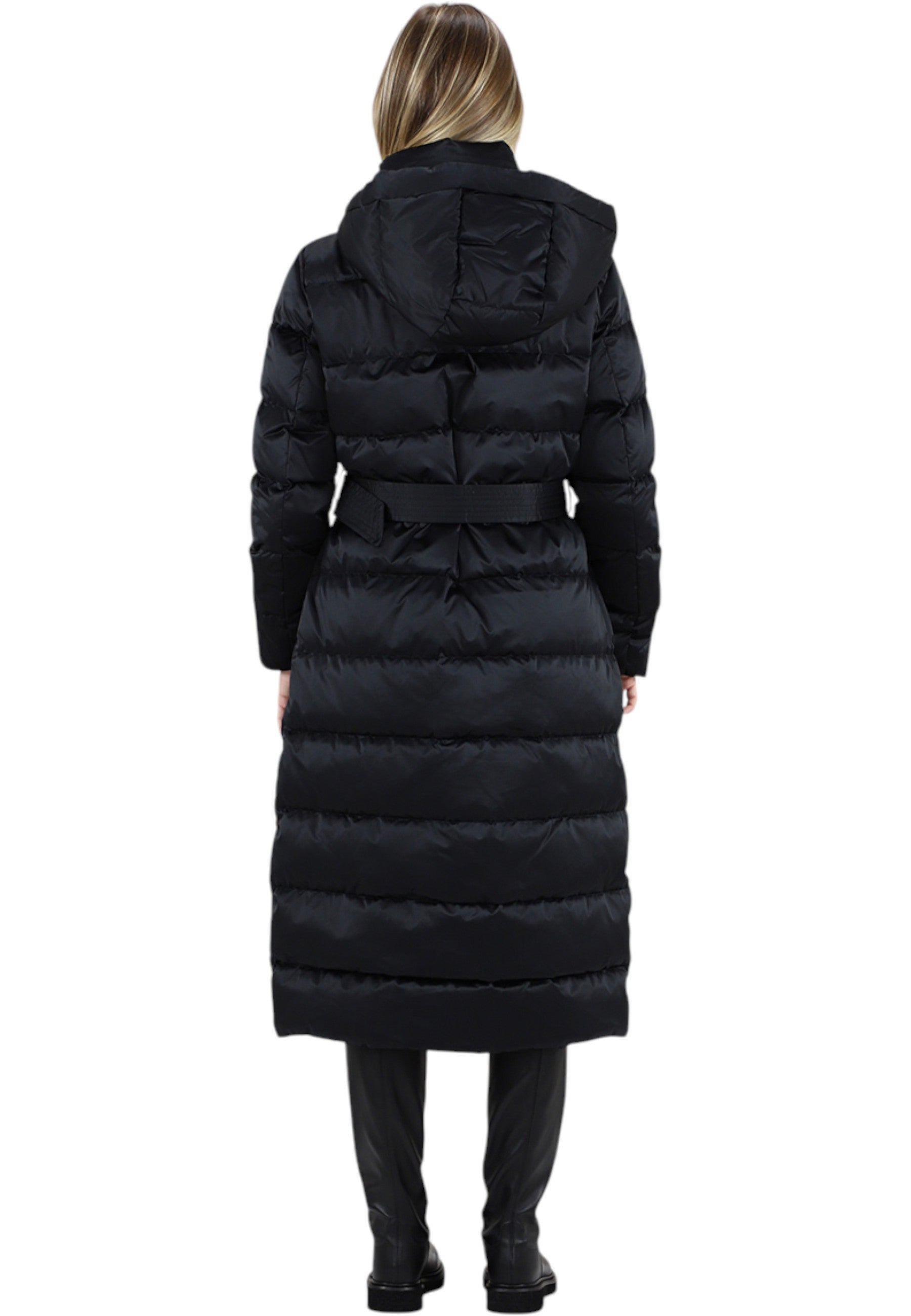 Piumino Lungo Da Donna Marchio Liu Jo, Modello Con Cappuccio Imbottito In Vera Piuma MF5011T017A, Realizzato In Poliestere.