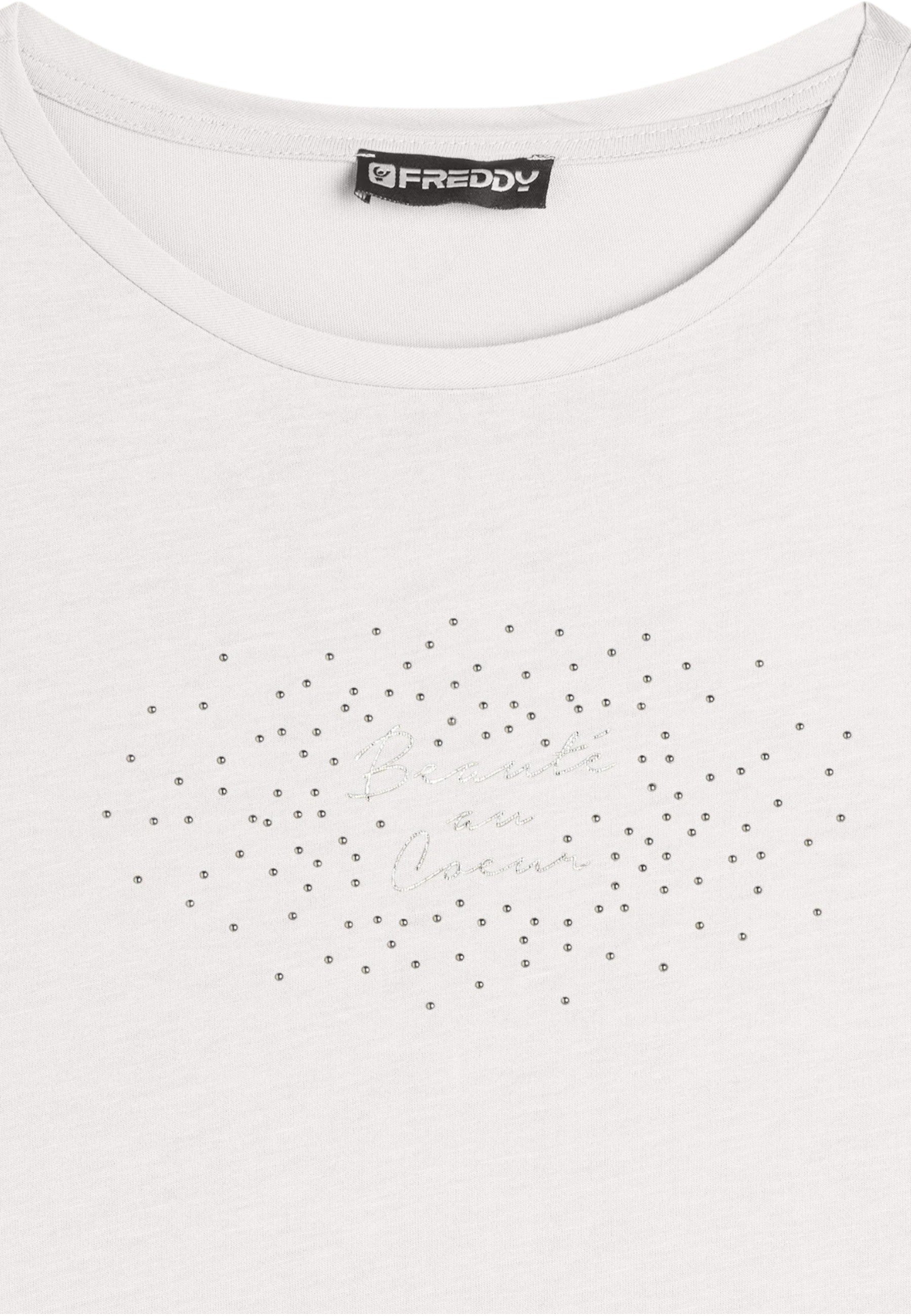 Non perdere l'opportunità di aggiungere un tocco di originalità al tuo look con la T-Shirt Manica Corta Donna Freddy, disponibile su Adel Fashion Group.